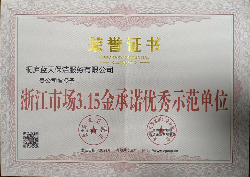 自1998年從事家政服務以來,為廣大群眾提供了便捷、高效的保潔服務,獲得了良好的口碑,成為杭州桐廬縣家政服務規(guī)模好大、信譽良好的“藍天”品牌。公司積極主動參與社區(qū)居民公益性活動,并經(jīng)常性地上門為低收入家庭、孤寡老人等群體提供免費家政服務。同時廣泛參與社會公共保潔服務項目和單位保潔服務項目,如縣城城南城北中心市場周邊道路保潔、客運中心、工商銀行、桐廬城南街道辦事處、移動公司和縣公安局等保潔衛(wèi)生等項目,得到了社會各界和服務單位的認同,先后被授予浙江省信用企業(yè)示范單位、質量信得過單位、質量服務信譽企業(yè)等榮譽稱號。自2009年以來,我公司中標桐廬城區(qū)城市“牛皮癬”治理項目,以專業(yè)細致的服務,維護了桐廬潔凈的家園,更為“示范文明縣城”和省級文明衛(wèi)生城市的創(chuàng)建作出了積極貢獻,贏得了市民一致好評和社會廣泛贊譽。在作業(yè)技術標準上,做到“色、形、潔、美”的有機結合,達到自然、和諧;在處理非法粘貼廣告上,按照“一刮、二鏟、三粉刷”程序操作,使作業(yè)墻達到干凈、整潔,不留粘貼痕跡,盡量不損壞建(構)筑和顏色;在作業(yè)要求上,在責任區(qū)內實行“三定管理”(定人員、定區(qū)域、定責任),并配備相應的管理人員和懂配色的專業(yè)人員,在責任轄區(qū)內進行定期或不定期的檢查,擬訂城市“牛皮癬”清理保潔實施方案,統(tǒng)籌安排年度工作計劃,優(yōu)化管理模式,開展街道清理“牛皮癬”競賽活動,我公司自承攬桐廬城區(qū)城市“牛皮癬”清洗保潔服務工作6年以來,堅持長效管理,優(yōu)質服務,高效運作,取得了很大的成效,全部被評為“優(yōu)秀”,受到了城市管理部門和市民群眾的一致肯定和好評。